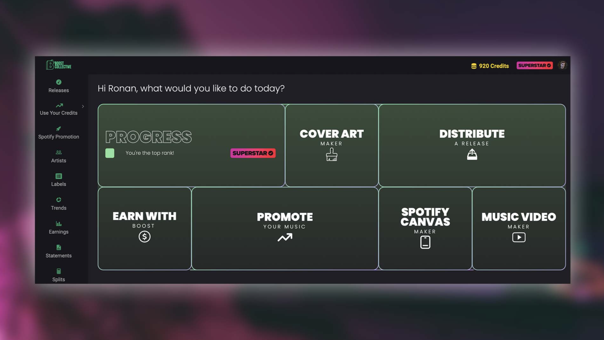 Boost Collective is a music distribution platform and promotion company that aims to assist artists and record labels in increasing their fan base and streams on platforms like Spotify, Apple Music, and SoundCloud. They’re new on the block in the distributor scene, and their marketing has a way of speaking directly to the artist. Boost’s marketing is very artist-friendly. No corporate BS, hidden fees, ancient music industry methods, Boost Collective is rebelling against the old ways, and is allowing artists to have more control over their careers.